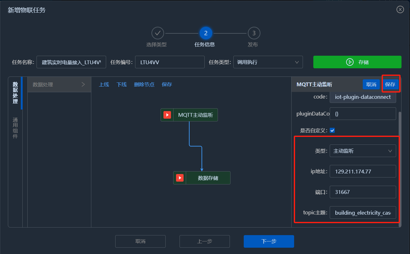 填入ip地址、端口、topic主题等信息(见下载专区),之后点击保存